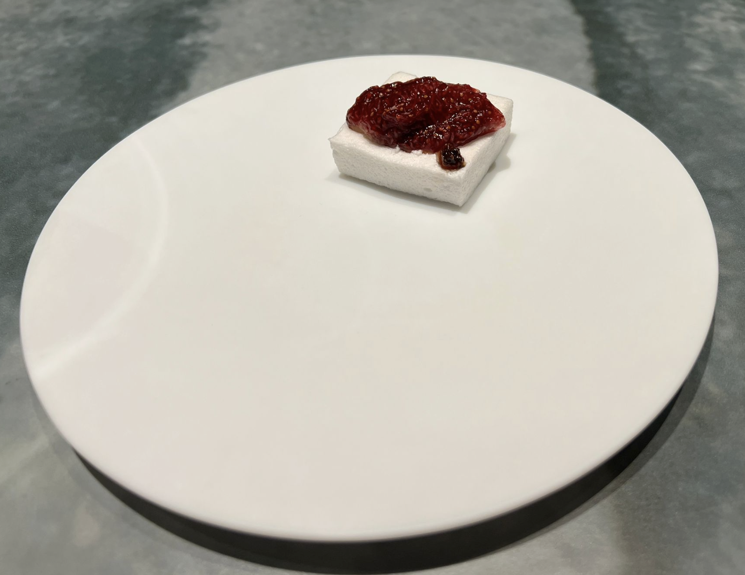 Amela tomato cured in kombu, covered with a thin layer of gelatinised tosazu.