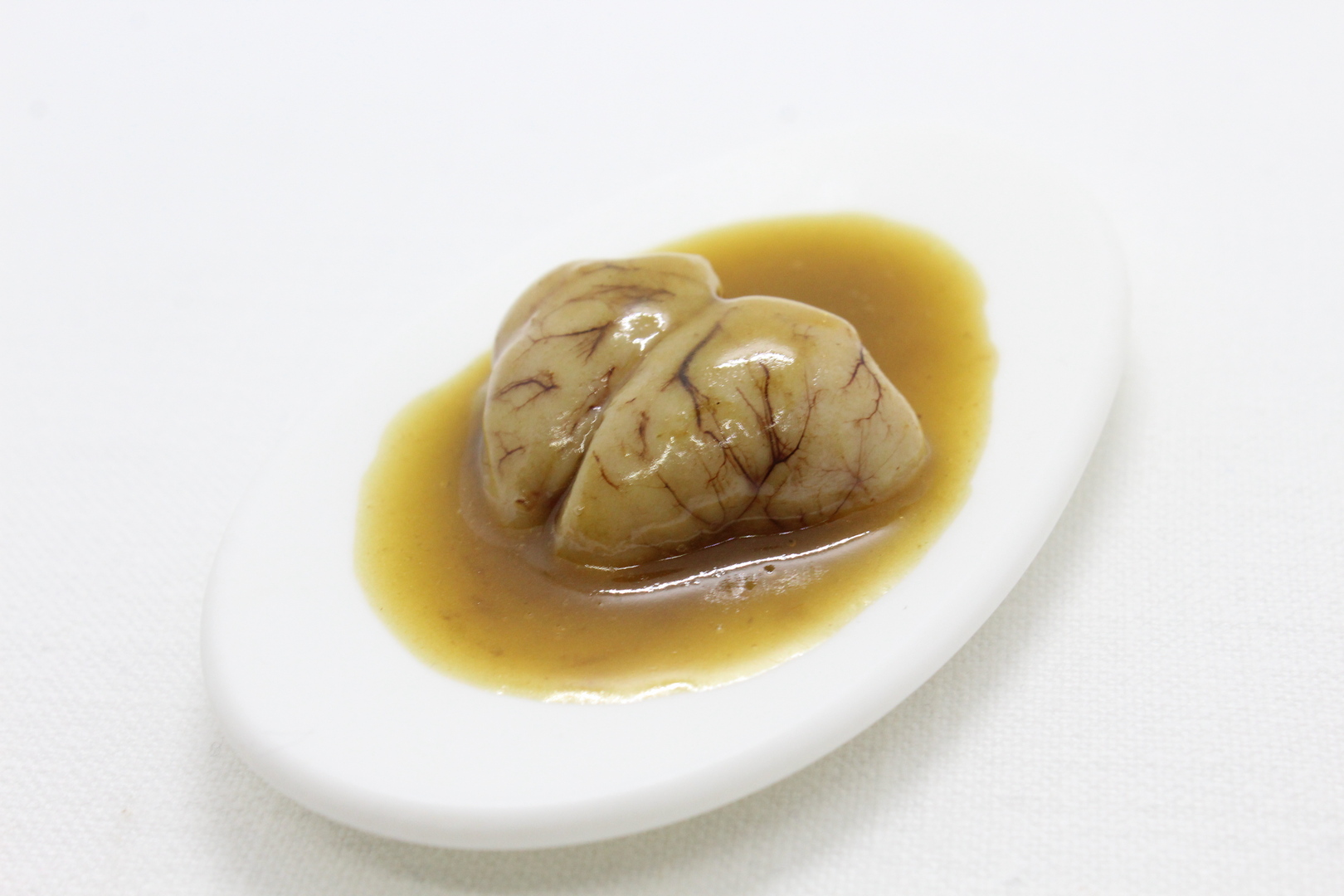 Seso de conejo y nuez cocidos en un escabeche clásico. Revisamos un plato del año 2017 de los inicios de Enigma.